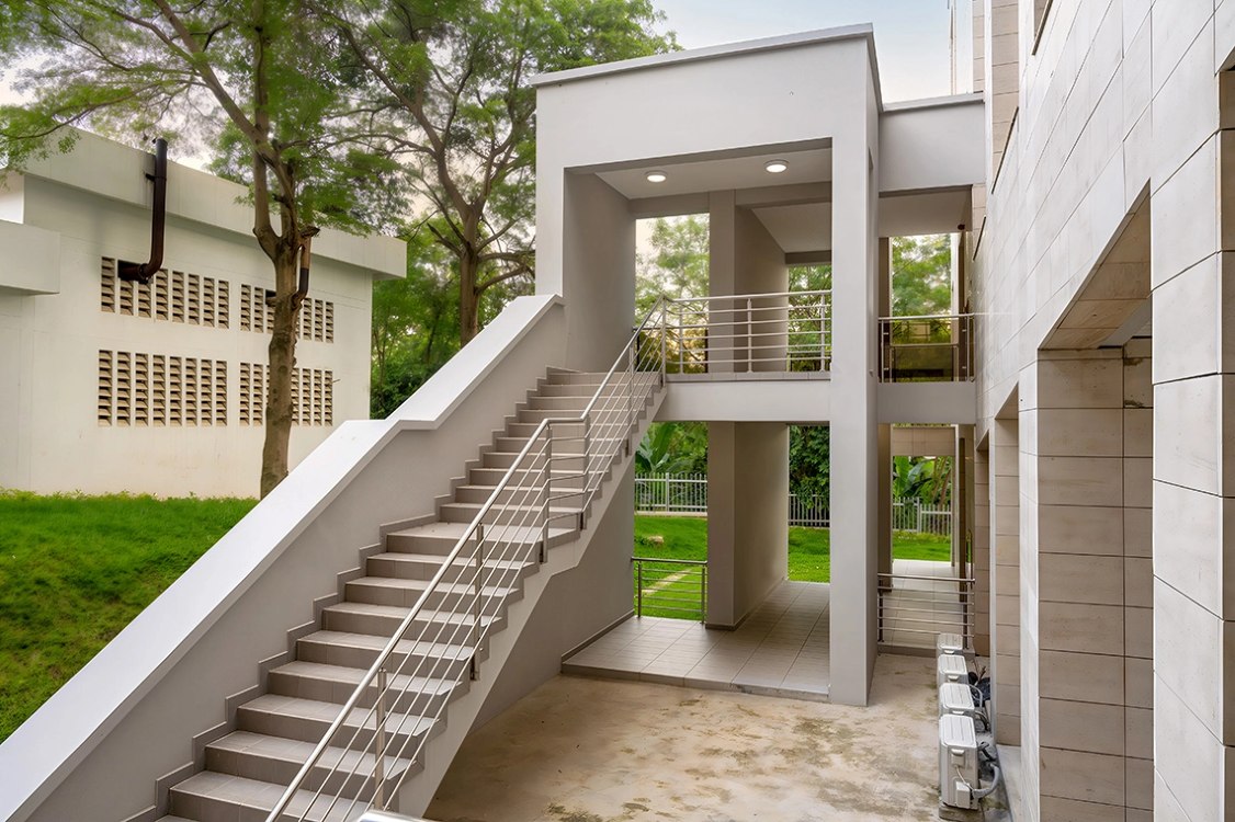 The Federal Judicial Service Commission Auditorium is conceived as a civic building that expresses institutional dignity through clarity of form, disciplined materiality, and a carefully ordered spatial sequence. The massing is composed of solid stone volumes carved by generous openings, establishing a presence that feels authoritative without becoming heavy or imposing.