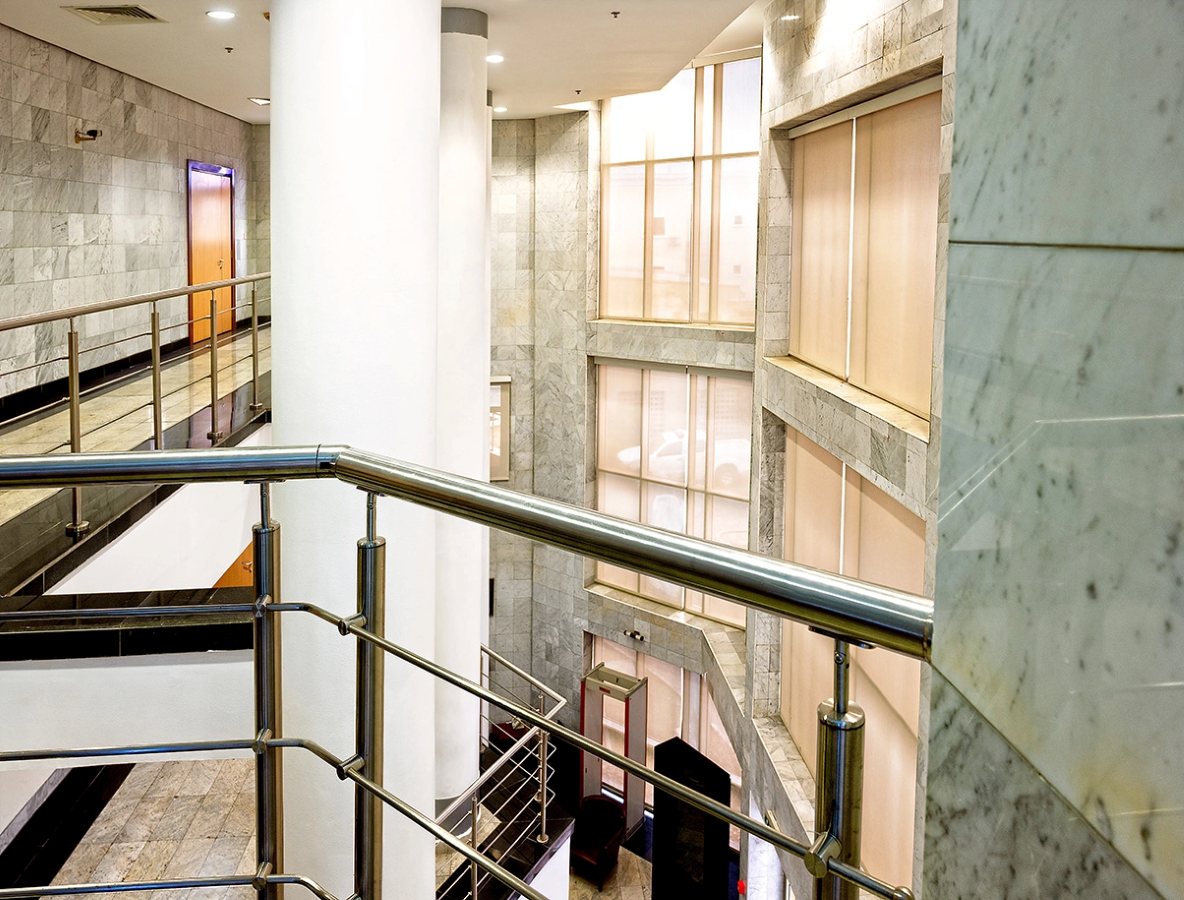 Externally, the pergola elements, expressed stair tower, and layered façades introduce rhythm and shadow to the elevations. These devices are not decorative; they temper the climate, break down scale, and give the building a recognizable civic identity. The controlled entry sequence reinforces security while maintaining architectural openness.
