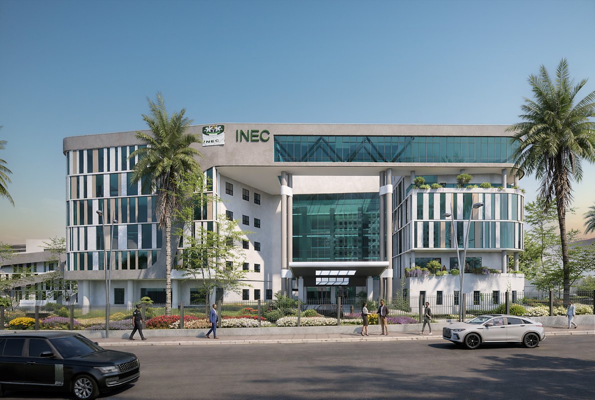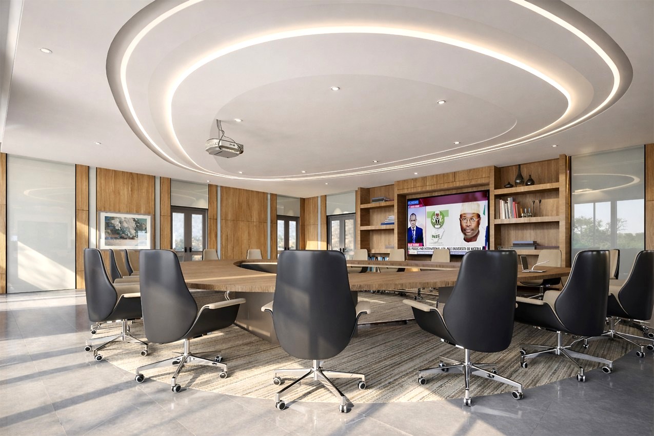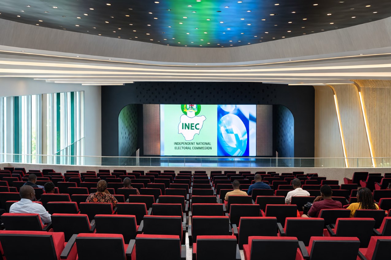 At ground level, the building accommodates a 1,000-seat auditorium, election monitoring situation rooms, archives, a museum, and public engagement spaces establishing the annex as both operational headquarters and civic interface. Upper floors house the National Commissioners, executive offices, meeting suites and departmental spaces, culminating in a boardroom, and Chairman’s office positioned at the highest level, overlooking Abuja’s cityscape and distant hills.